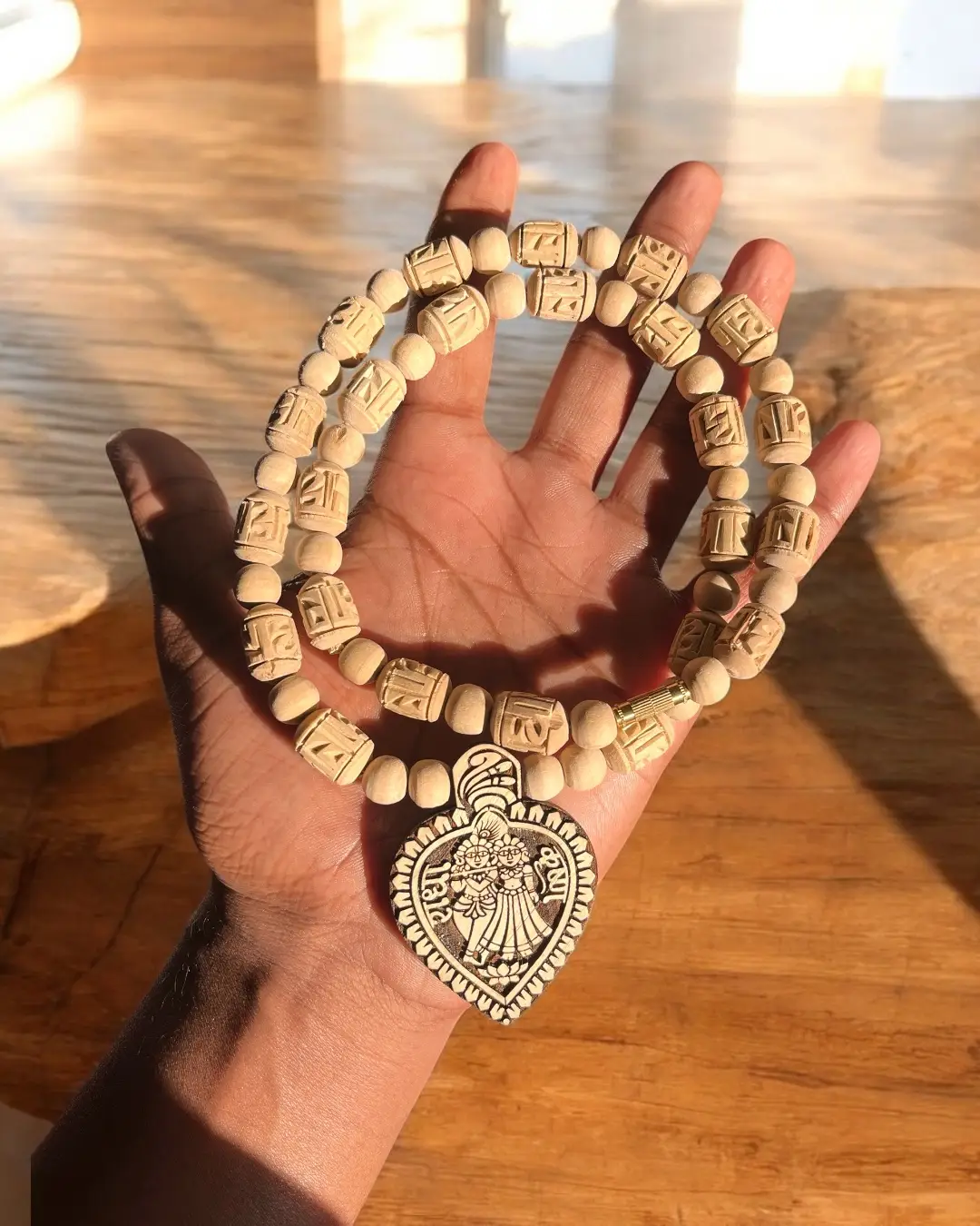 Radha Name Beads with Radha-Krishna Pendant Original Tulsimala