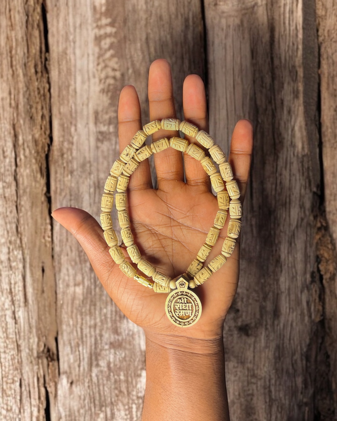 This Tulsi Mala features a Shri Radha Raman locket with Radha name engraved beads, handcrafted from 100% genuine Tulsi wood. Ideal for daily chanting, meditation, and devotional wear, it offers spiritual purity, durability, and a graceful finish. Sourced from authentic Tulsi regions, this mala is perfect for devotees seeking love and devotion of Shri Radha Raman.